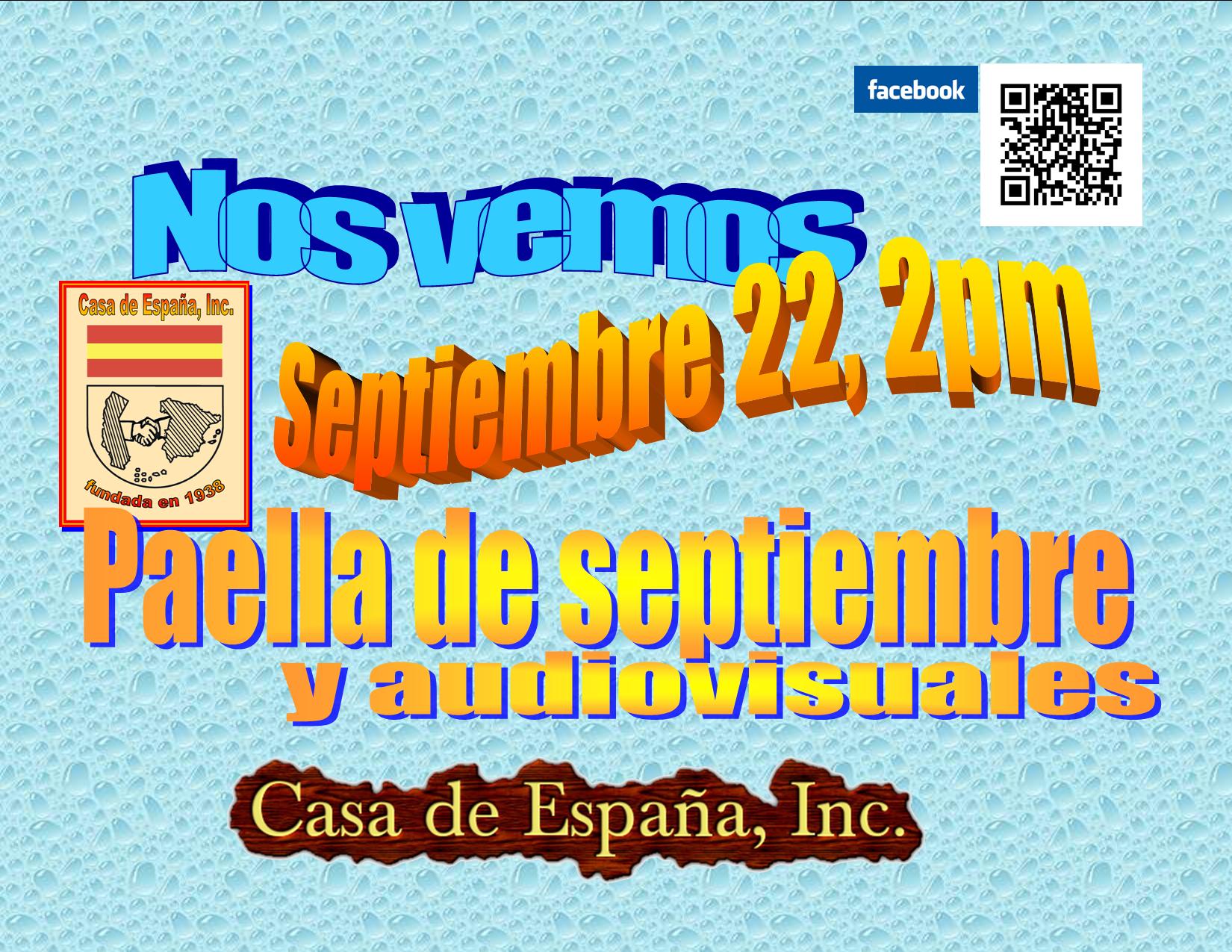 .....Paella y Audiovisuales, domingo 22 de septiembre de 2024 a las 2pm. Puertas abrirán 1/2 hora antes.