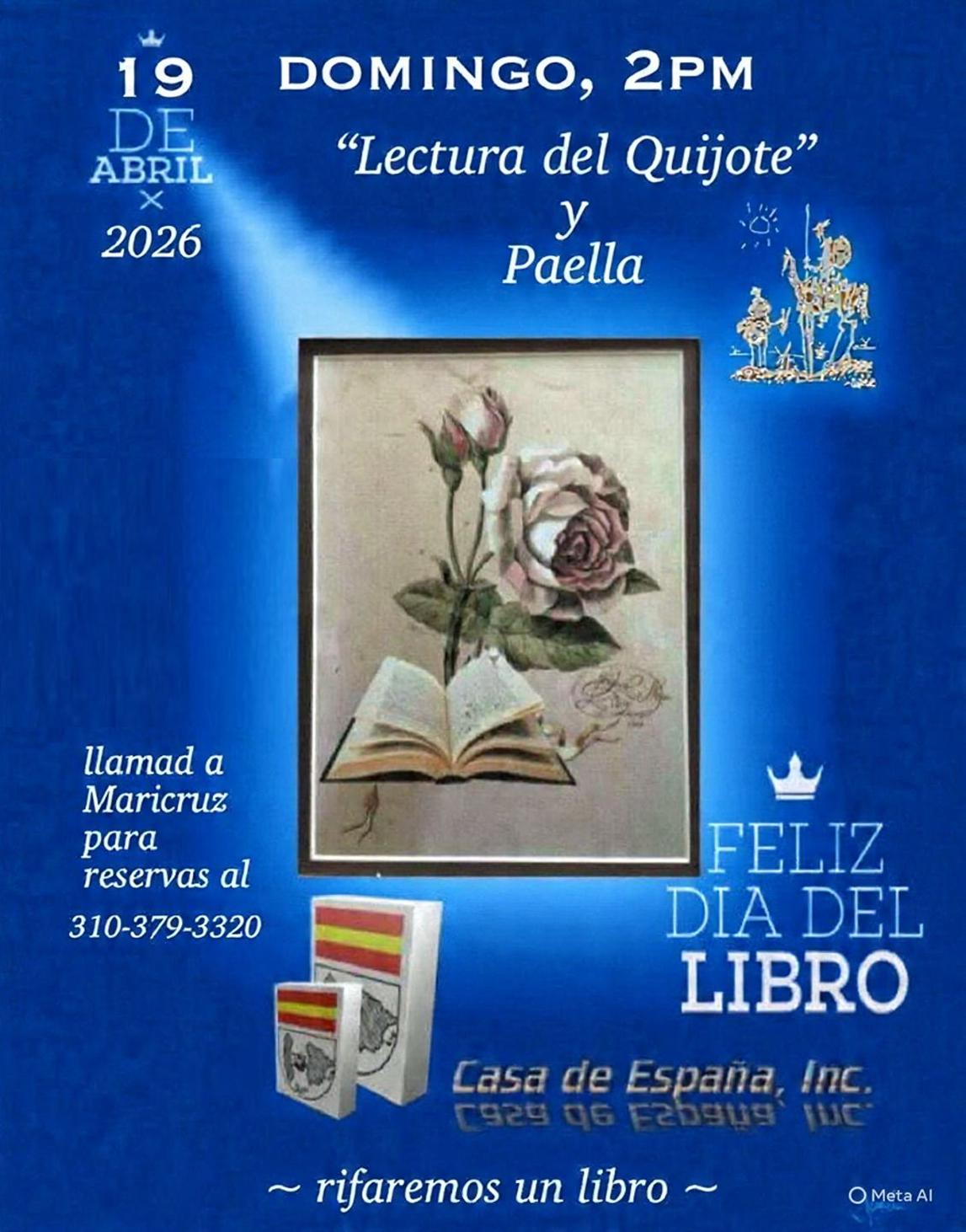 ....."DÍA DEL LIBRO - LECTURA DEL QUIJOTE" - PAELLA, domingo 19 de abril comenzando a las 2pm.